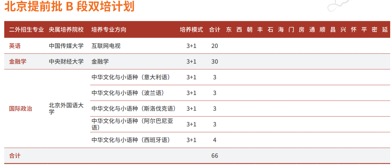 北京本科普通批招生计划
