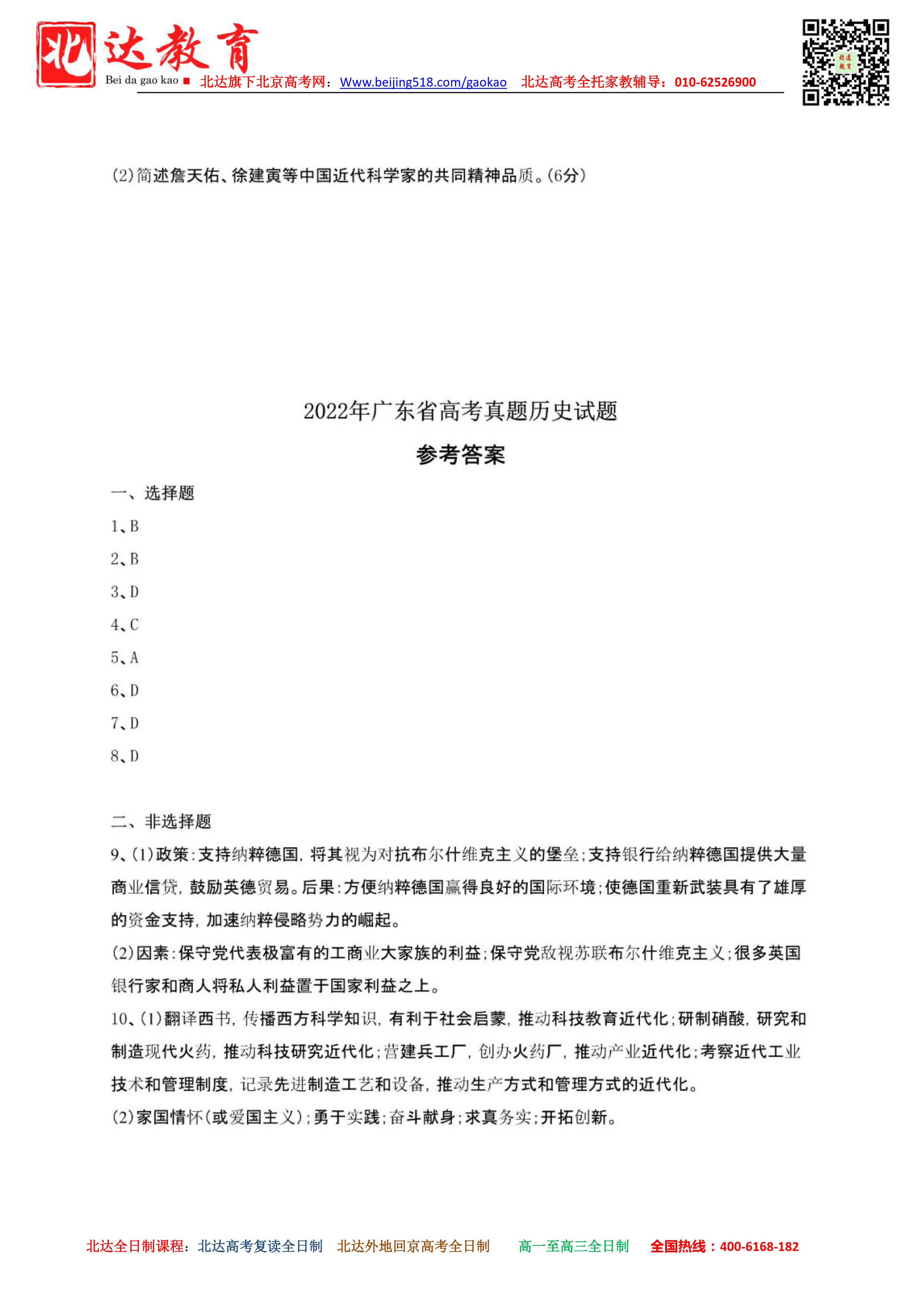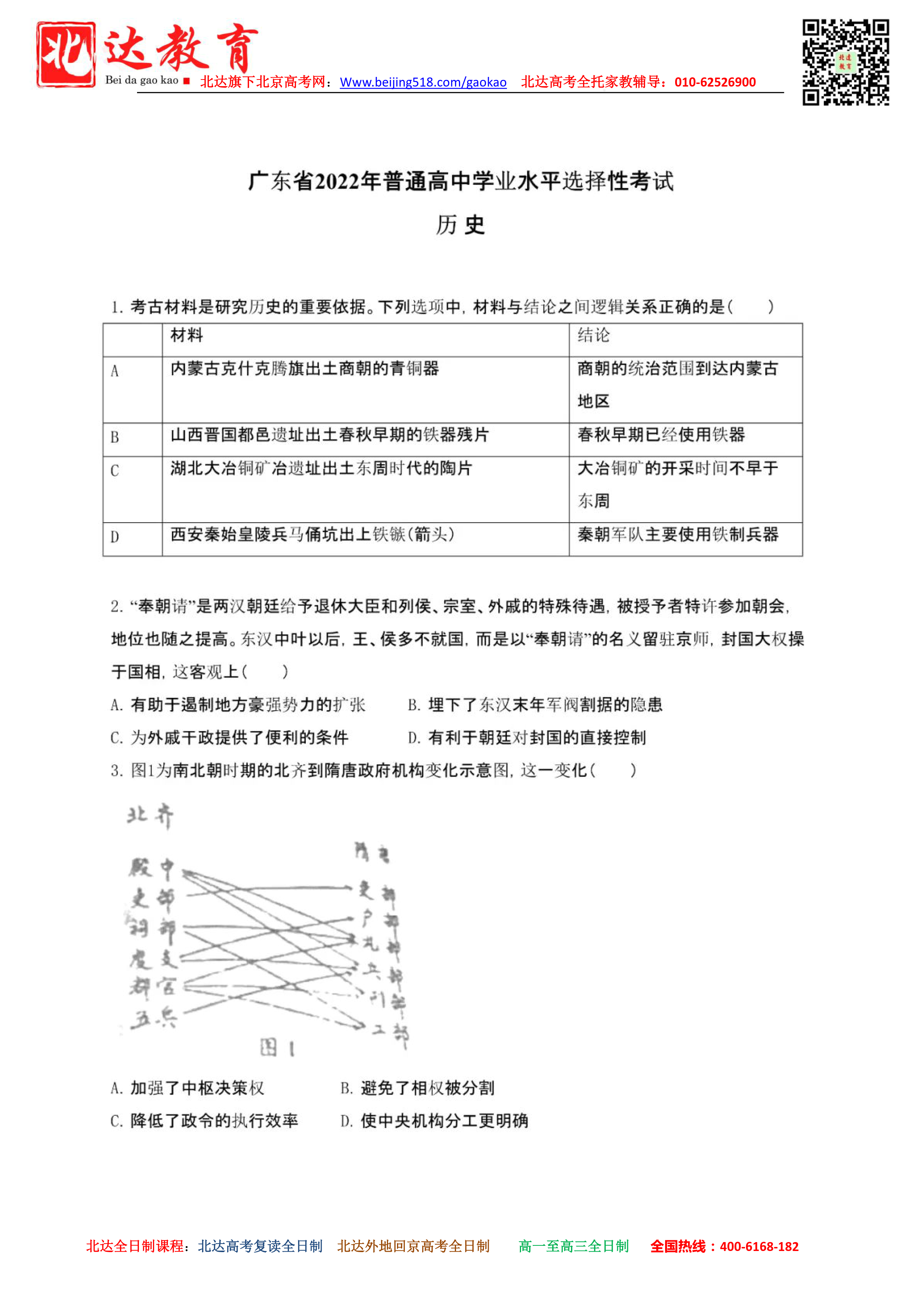 北京admw360教研组为大家整理了2022年新高考全国1卷(广东卷)历史试题及答案,希望对大家有所帮助。