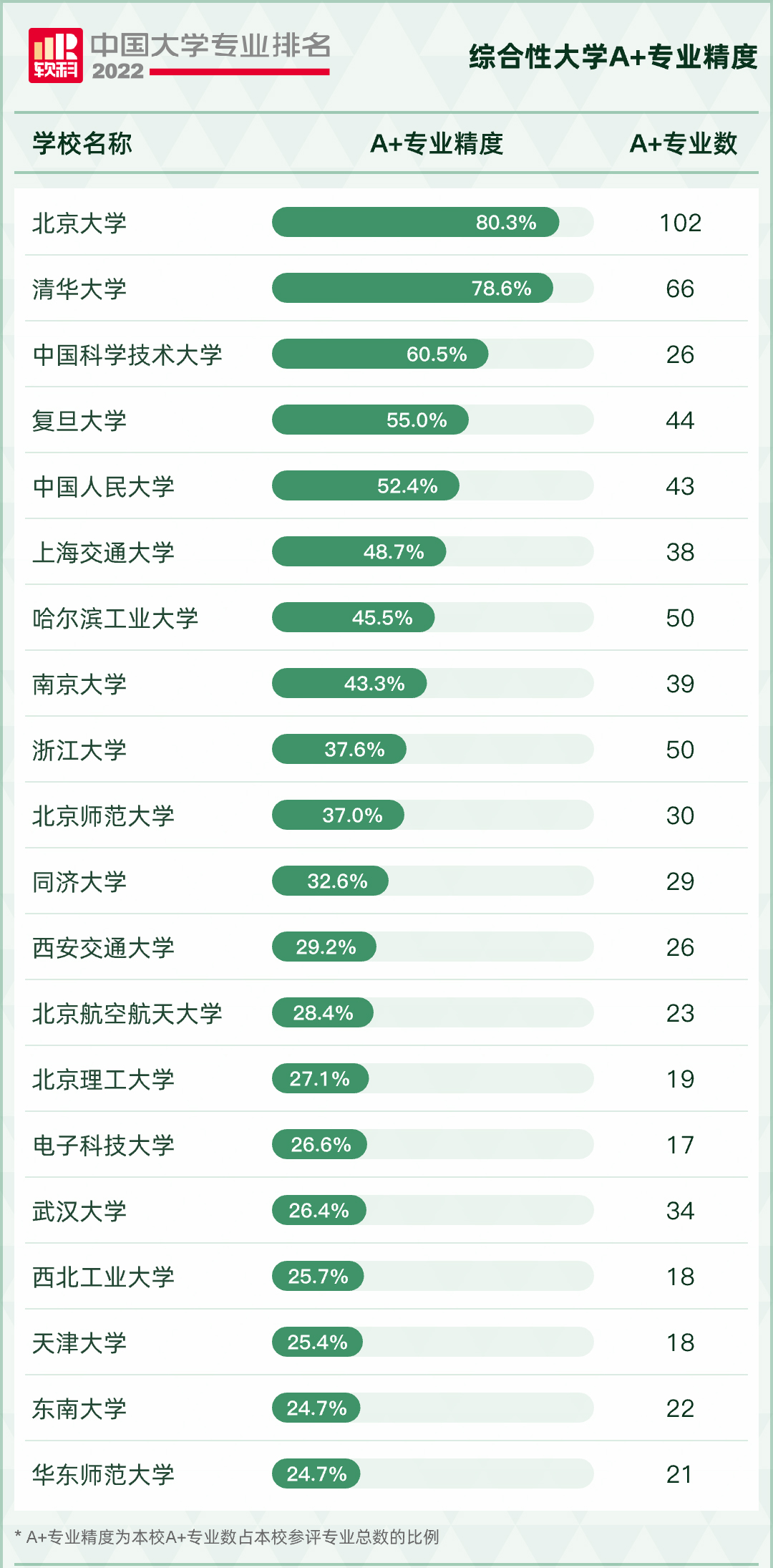 2022软科中国大学专业排名,高校A+专业精度20强