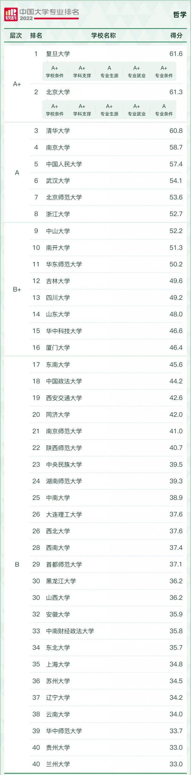 2022哲学类专业大学排名