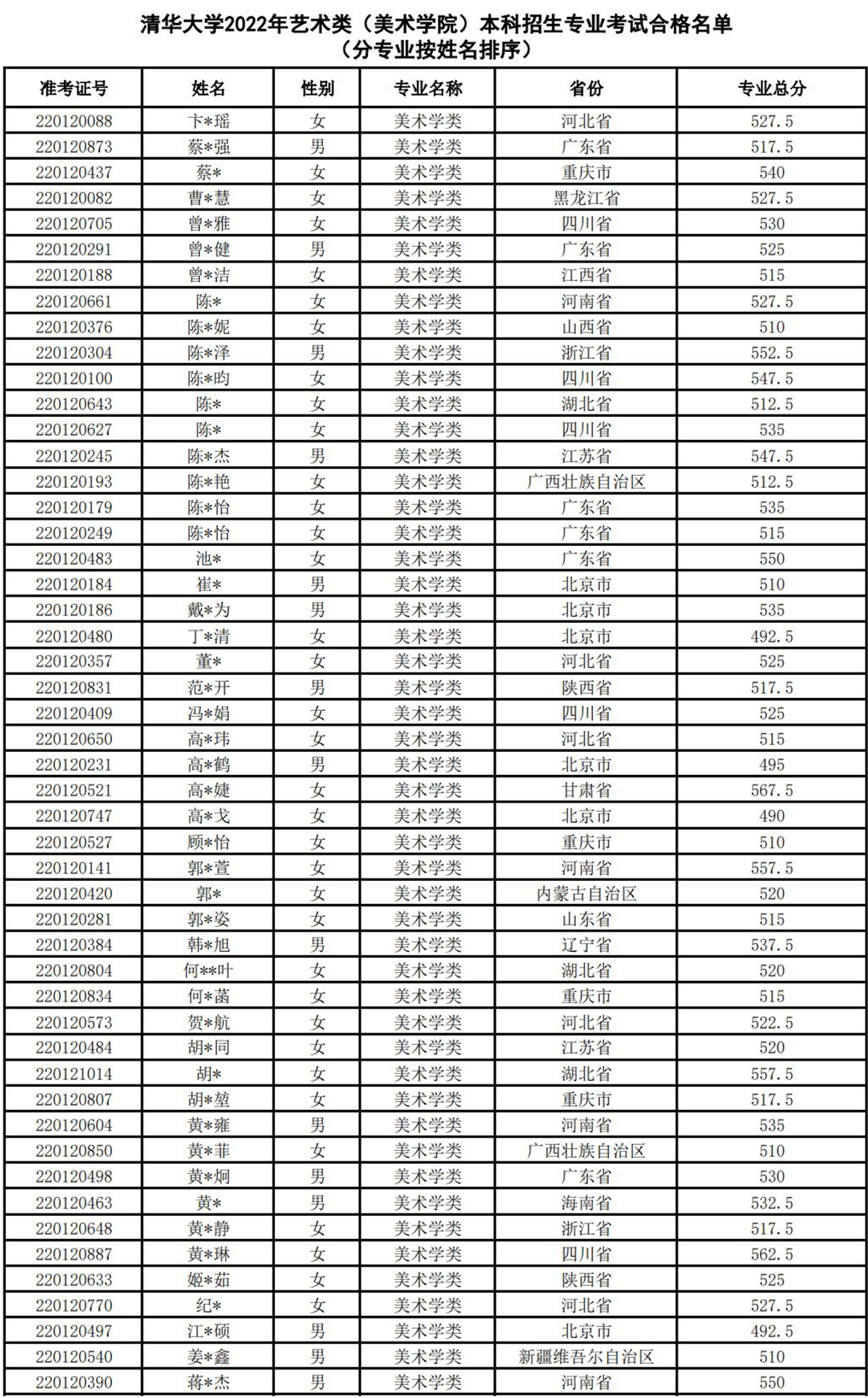 2022年清华大学美术学院艺术类专业考试合格名单已发布,北京admw360教研组为大家整理了名单详情,一起来看。