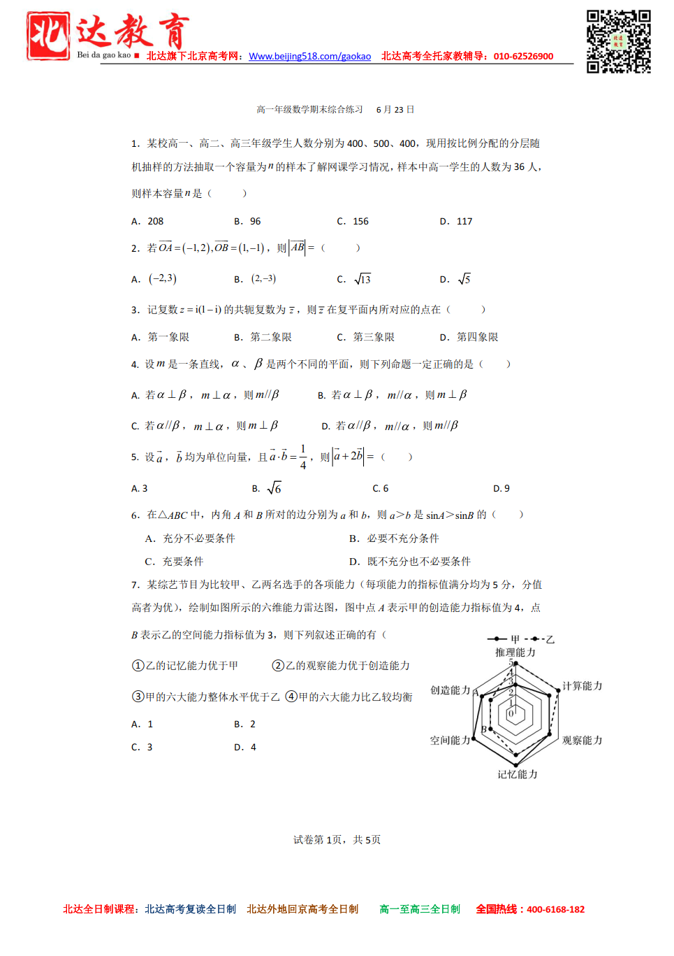 相关阅读:2022年北京高一年级考试题及答案汇总