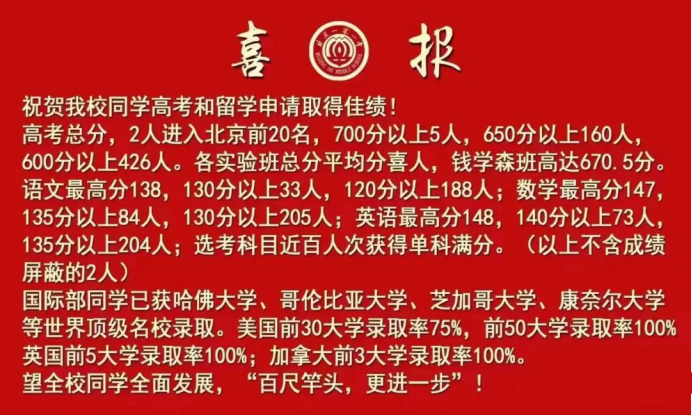 高考成绩只是评价学校的一个维度,不代表全部,对于成绩大家还需要理性看待。