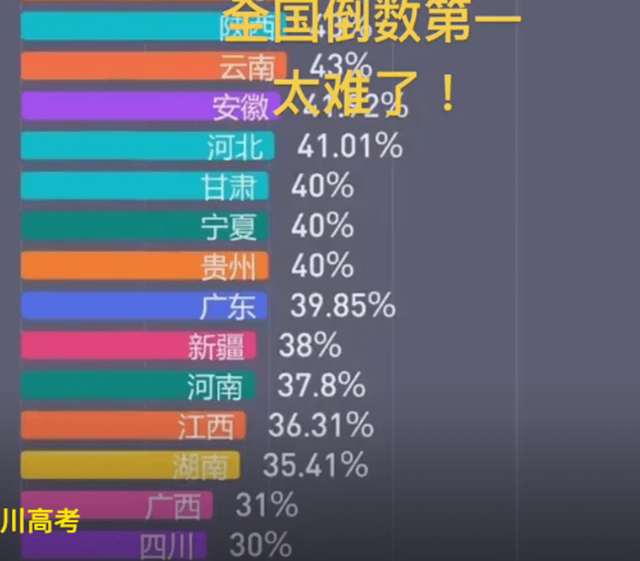 辽宁省的表现让人出人意料之外,还有一个省市也是让人比较惊讶的,那就是四川省。从我们查找的数据中可以看出,北京、天津的高考录取率高达80%以上,而四川省的录取率却仅仅在30%左右徘徊,这到底是什么原因导致的呢?从四川省的录取率我们可以看出今年四川省的竞争是相当激烈的,导致出现这种情况的原因有很多,其中最重要的还是学生的素质水平和参加高考的人数。之前我们就提到,一个省市的经济发展越发达,那么该省市的教育资源也会越好,同样学生的素质水平也会随之增高。还有原本四川省的教育资源比较匮乏,再加上参加高考的人数过多,自然而然会影响高考录取率。