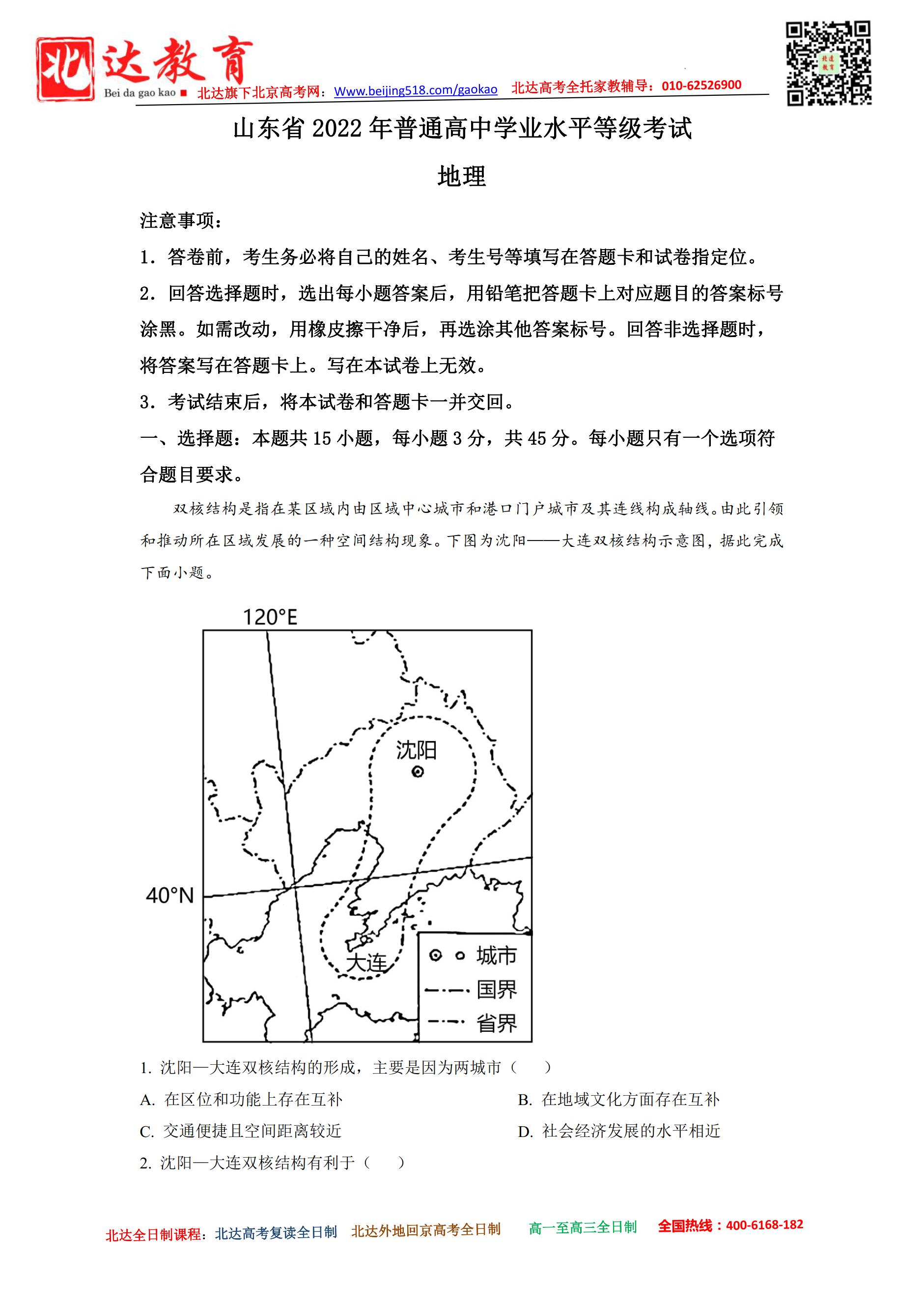 北京admw360教研组为大家整理了2022年新高考全国1卷(山东卷)地理试题及答案,希望对大家有所帮助。