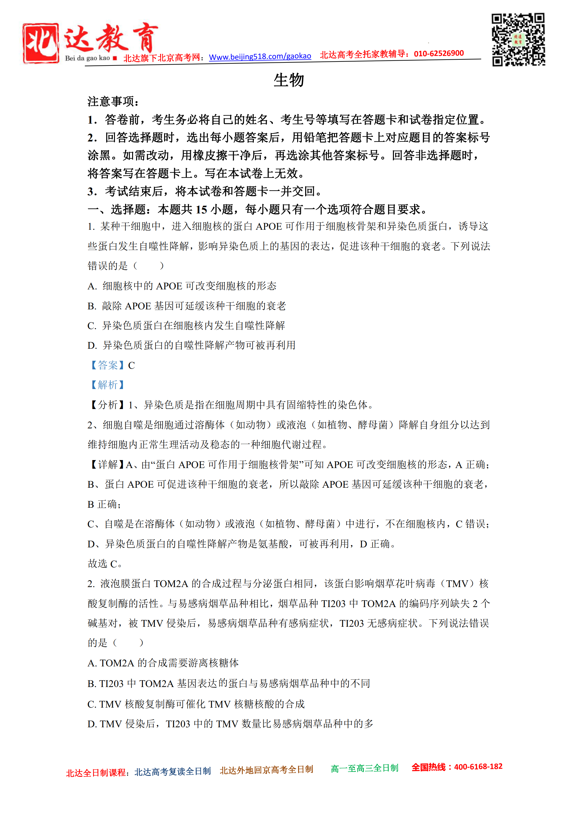 北京admw360教研组为大家整理了2022年新高考全国1卷(山东卷)生物试题及答案,希望对大家有所帮助。