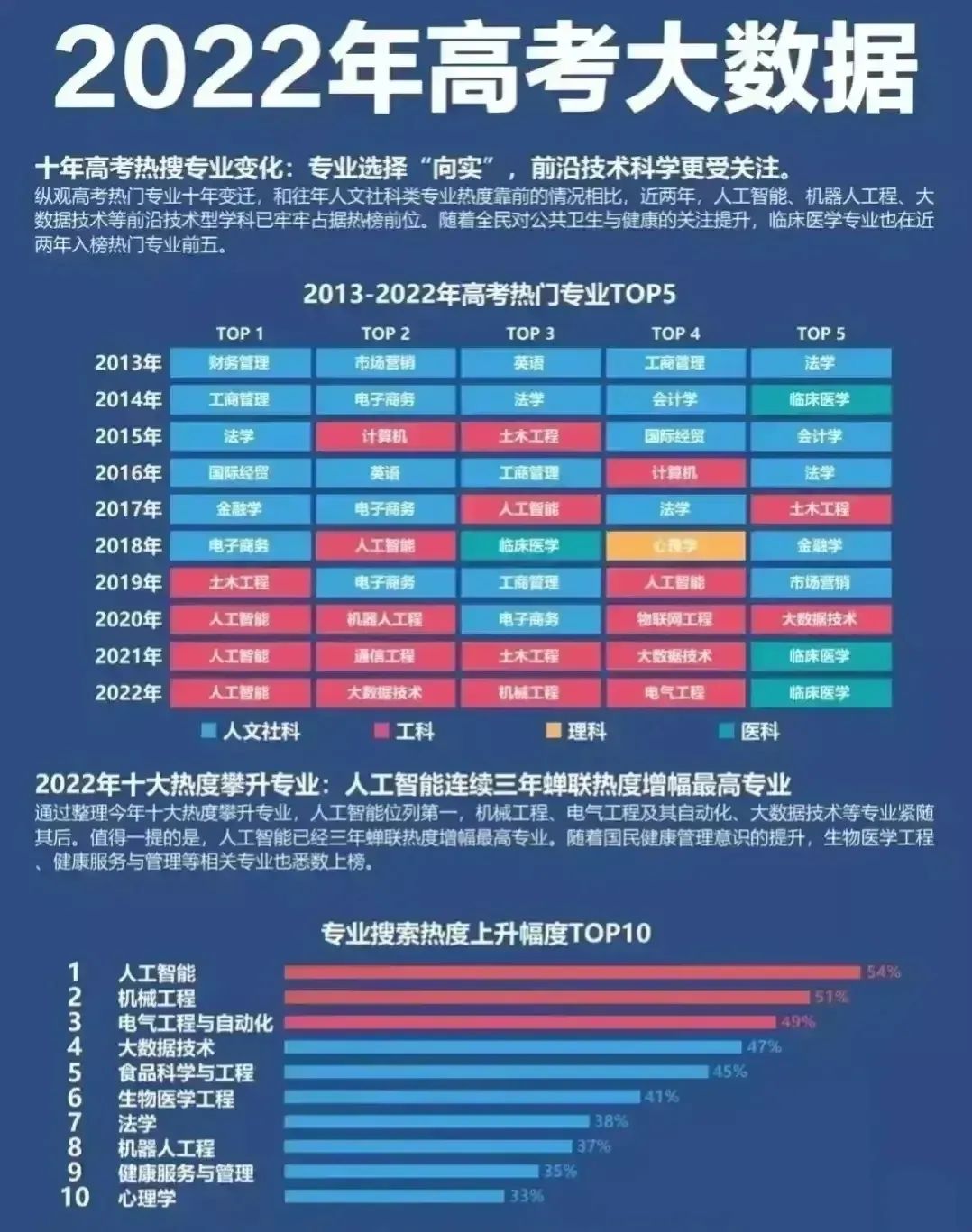 近日,北京admw360教研组为大家整理了2013-2022年高考热门专业TOP5,一起来看看都有哪些专业吧。