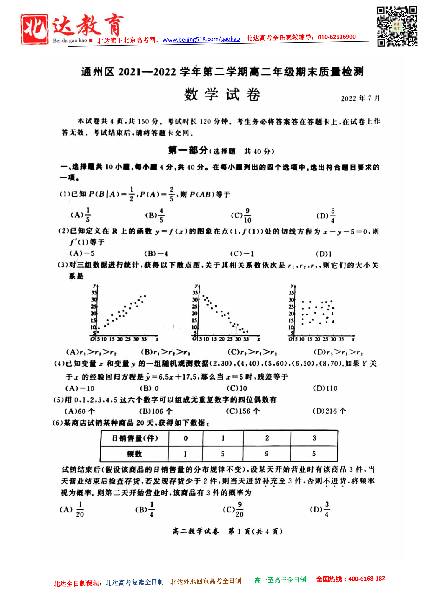 相关阅读:2021-2022年北京各区高二下学期期末考试试题及答案汇总