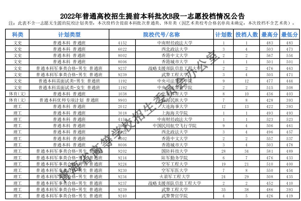 2022青海高考提前本科批次B段投档线