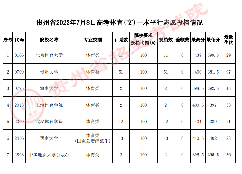 贵州省2022高考本科提前批体育类投档线发布,北京admw360教研组第一时间为大家整理了相关内容,一起来看看最低分是多少吧!