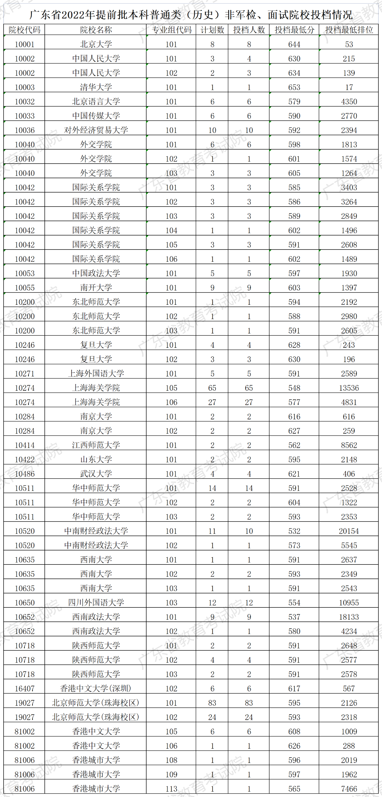 广东省2022本科提前批录取投档分数线最新发布,北京admw360教研组为大家整理了内容详情,一起来看。