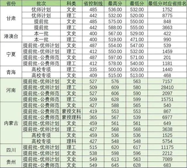 以华中师范大学为例,在河南文史类公费师范生投档最低分590分,全省位次2097名;理工类投档最低分599分,全省位次15751名。