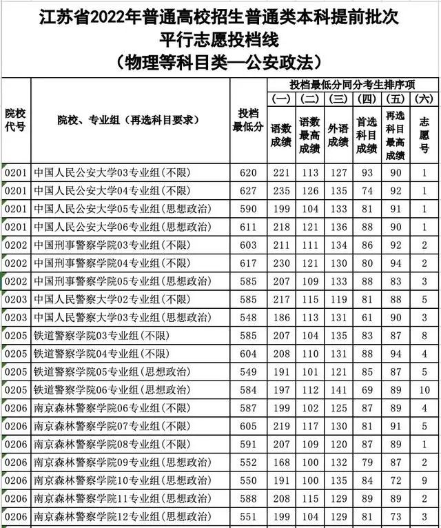 公安、司法类院校近几年持续升温,2022年热度不减,录取分数线持续上升。以江苏为例,最低投档分上涨幅度最高的是江苏警官学院,该院07专业组分数线上涨39分,位次上涨13168名。号称“警中清华”的中国人民公安大学在江苏录取最高分627分,全省位次3821名。