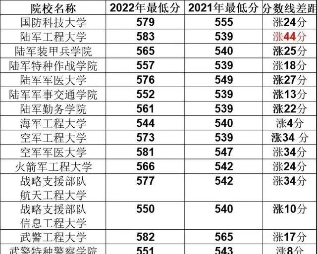 军事类院校一向受考生青睐,每年的竞争也是很激烈的。还以江苏为例,军事类院校的录取分数线全线上涨。其中,海军工程大学03专业组,上涨37分,上涨17050个位次;海军工程大学01专业组,上涨37分,上涨15749个位次。