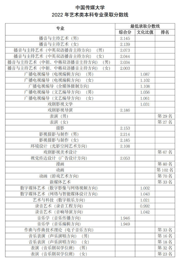 2022中国传媒大学艺术类招生录取分数线发布,北京admw360教研组为大家整理了内容详情,一起来看。