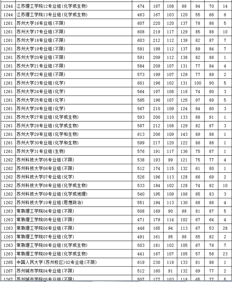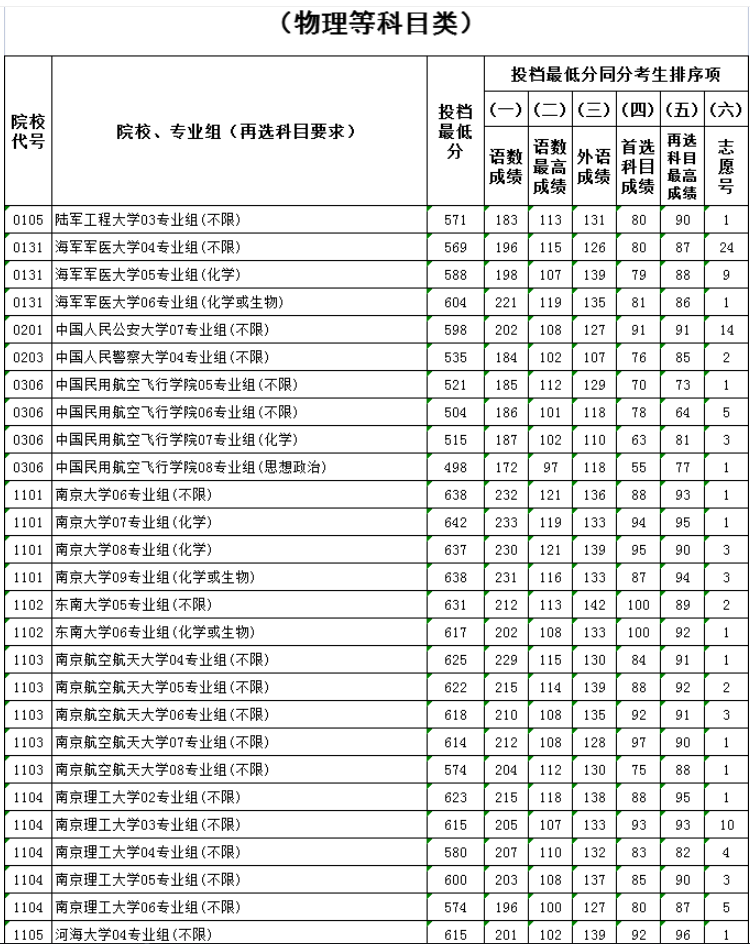 苏省2022年普通类本科批次平行志愿投档线(物理等科目类)