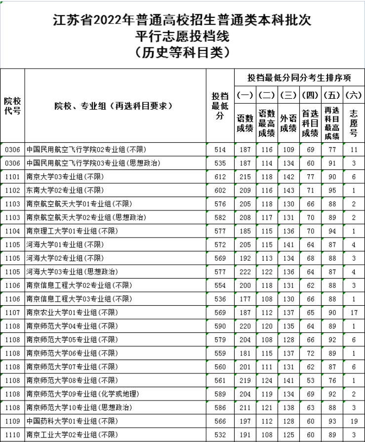 2022江苏普通类本科批次平行志愿投档线(文史类)公布,北京admw360教研组整理了具体的分数,数据详情如下: