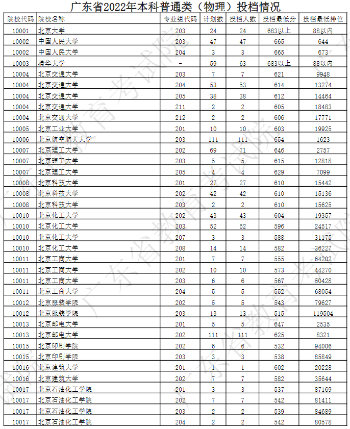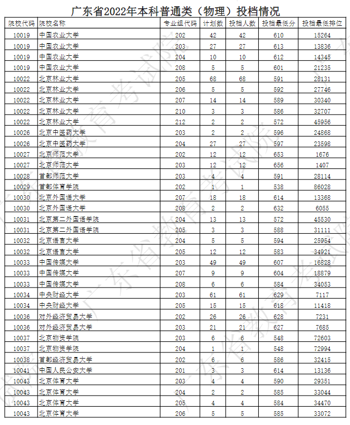 2022年广东省高考本科普通类投档线发布(首选物理),北京admw360教研组整理了具体的分数,数据详情如下: