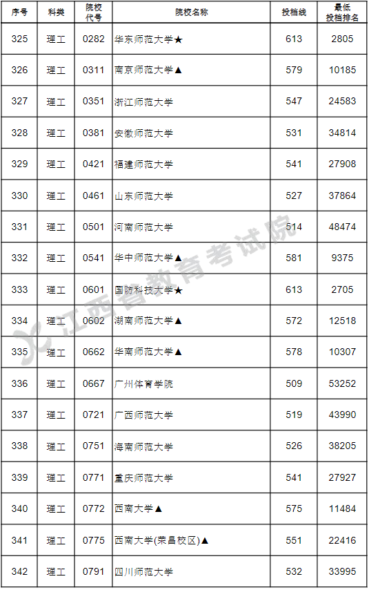 2022年江西省高考本科一批投档分数线(理科)公布,北京admw360教研组整理了具体的分数,数据详情如下: