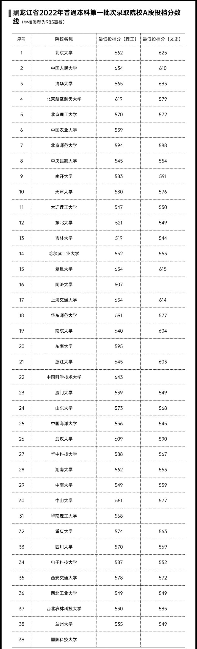 2022各大高校在京招生录取投档线已公布,为此,北京admw360教研组整理了985高校在黑龙江本科普通批次录取投档线,分享给大家:
