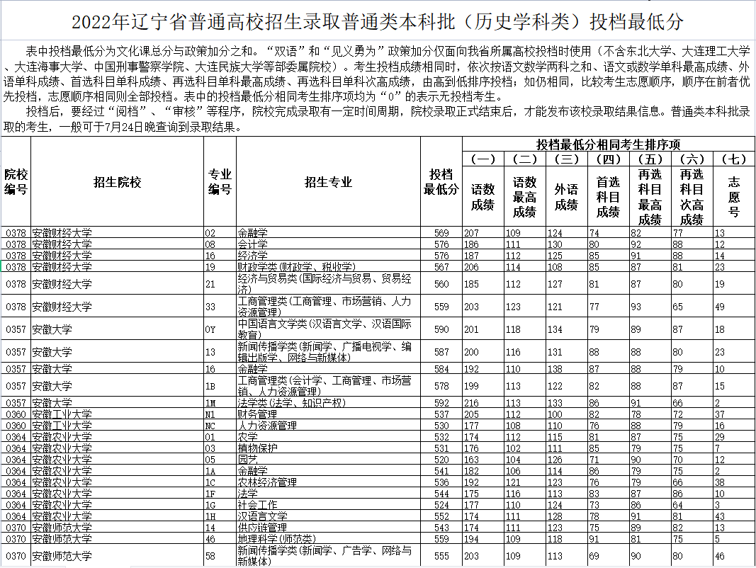 2022辽宁高招本科普通批(历史学科类)投档分数线发布,北京admw360教研组整理了具体的分数,数据详情如下: