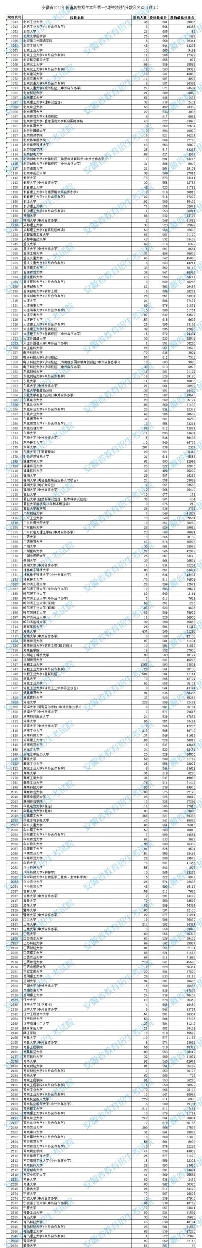 2022安徽高考本科一批投档分数线(理科类),北京admw360教研组整理了具体的分数,数据详情如下: