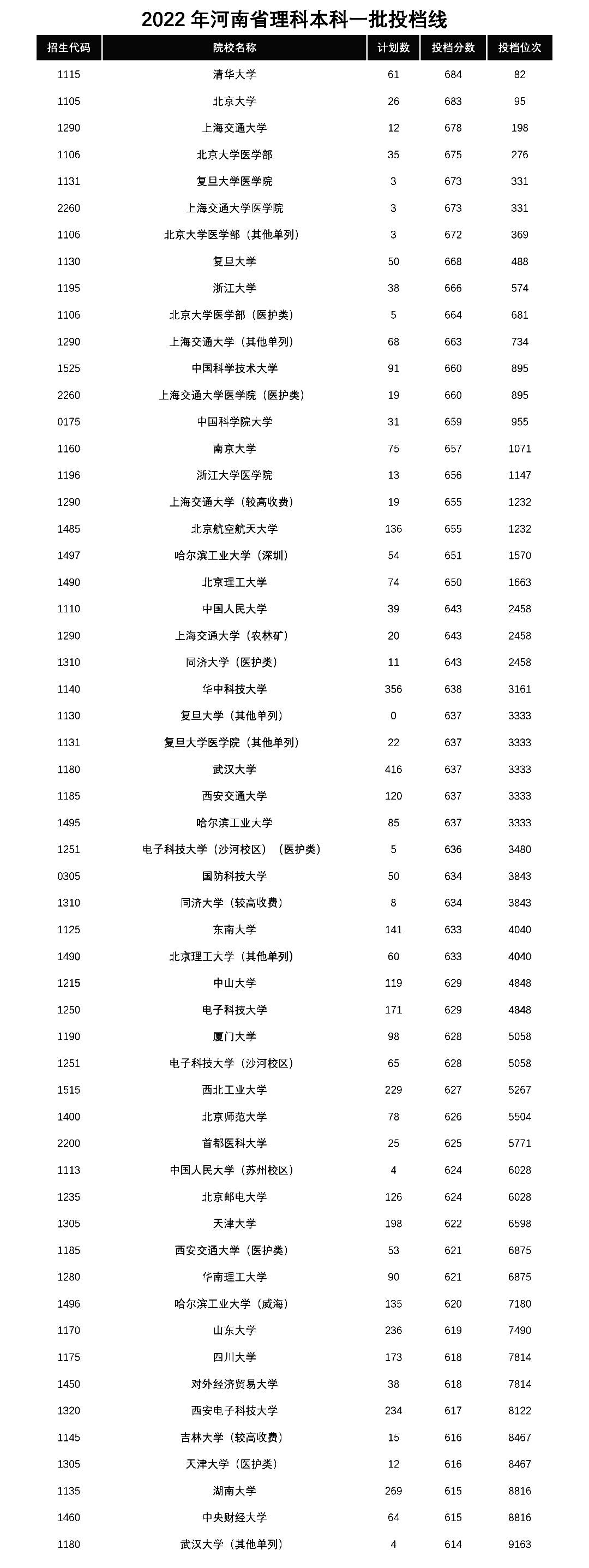 2022年河南省高考本科一批录取投档分数线(理科)发布,北京admw360教研组整理了具体的分数,数据详情如下: