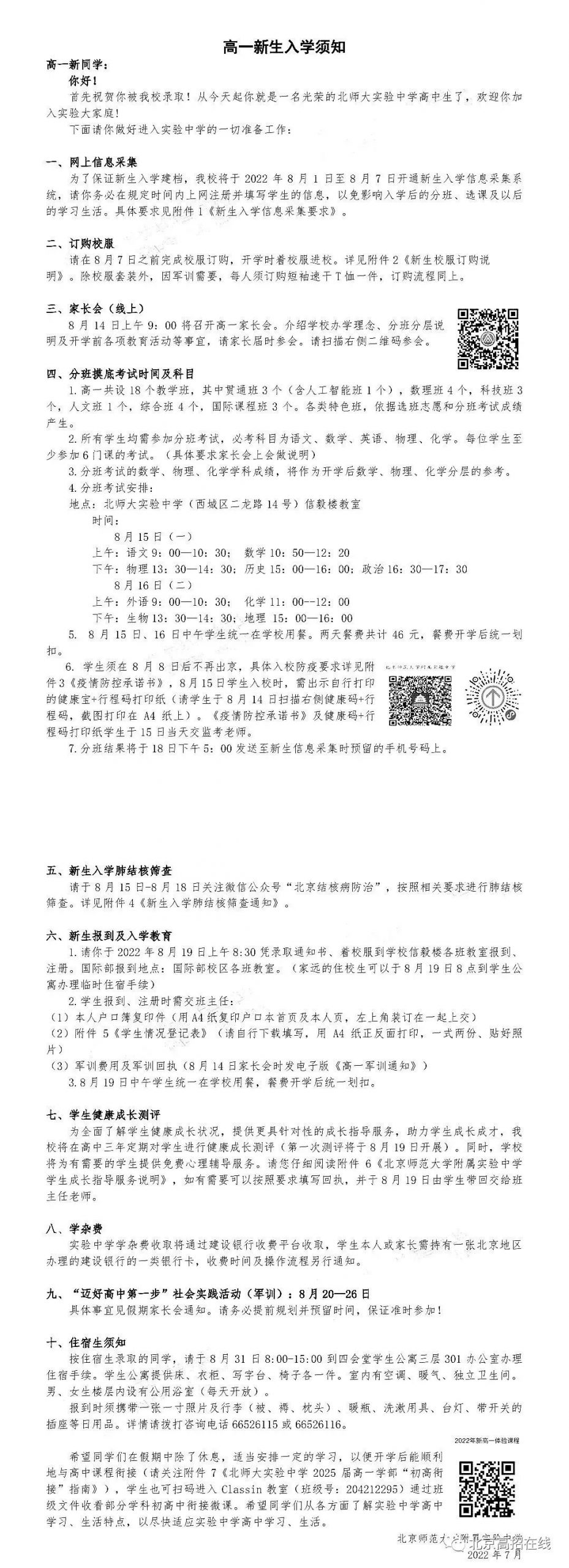 北师大实验中学2022年新高一入学安排已公布,为了方便各位同学做好开学准备,北京admw360教研组整理了北京五中新高一入学安排,一起看下。
