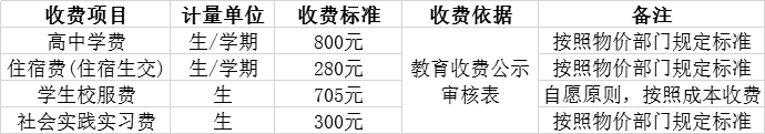 (1)学费、住宿费:正式开学时统一缴费。
