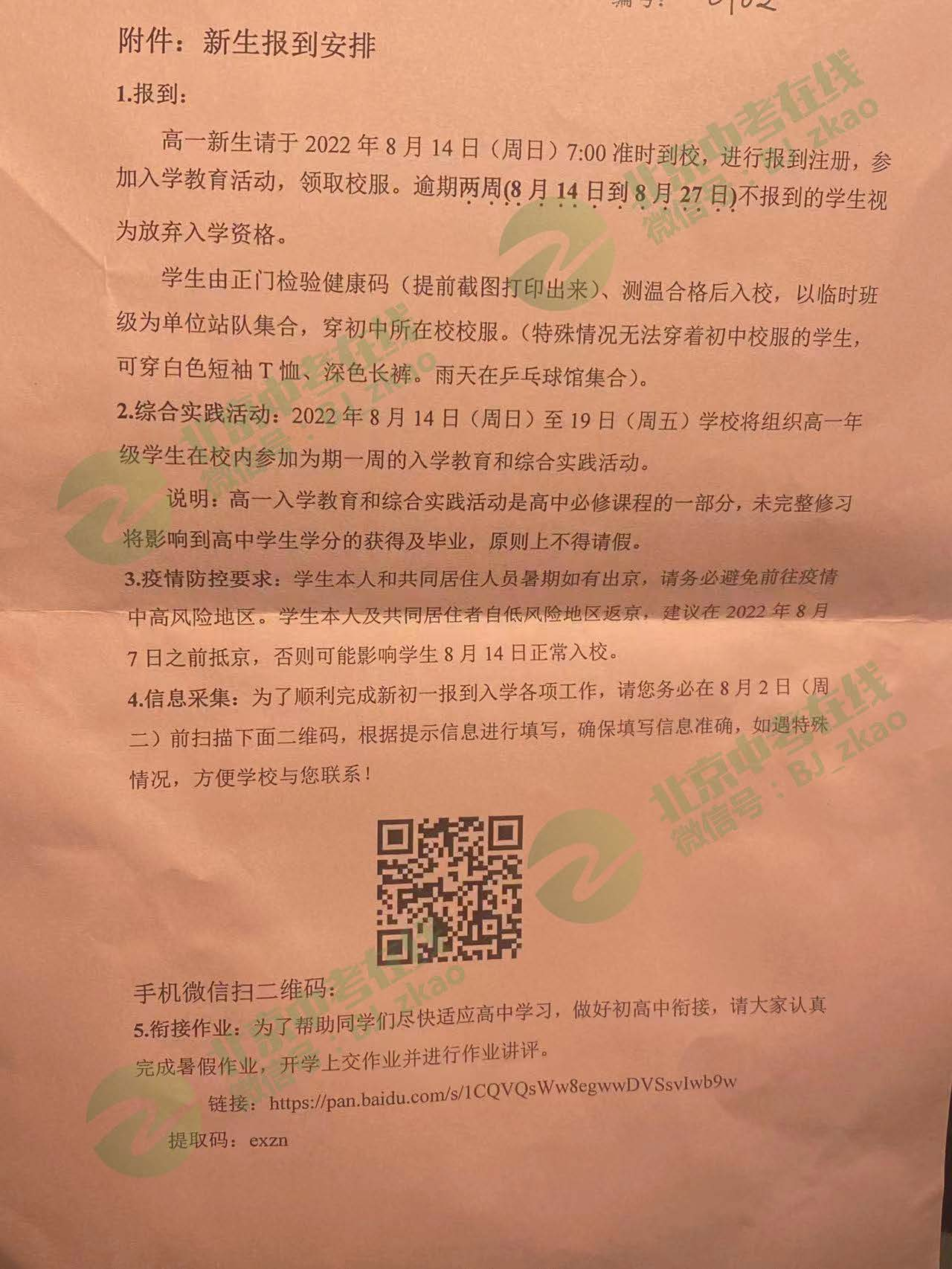北京东直门中学 2022年新高一入学安排发布,为了方便各位同学做好开学准备,北京admw360教研组整理了北京五中新高一入学安排,一起看下。