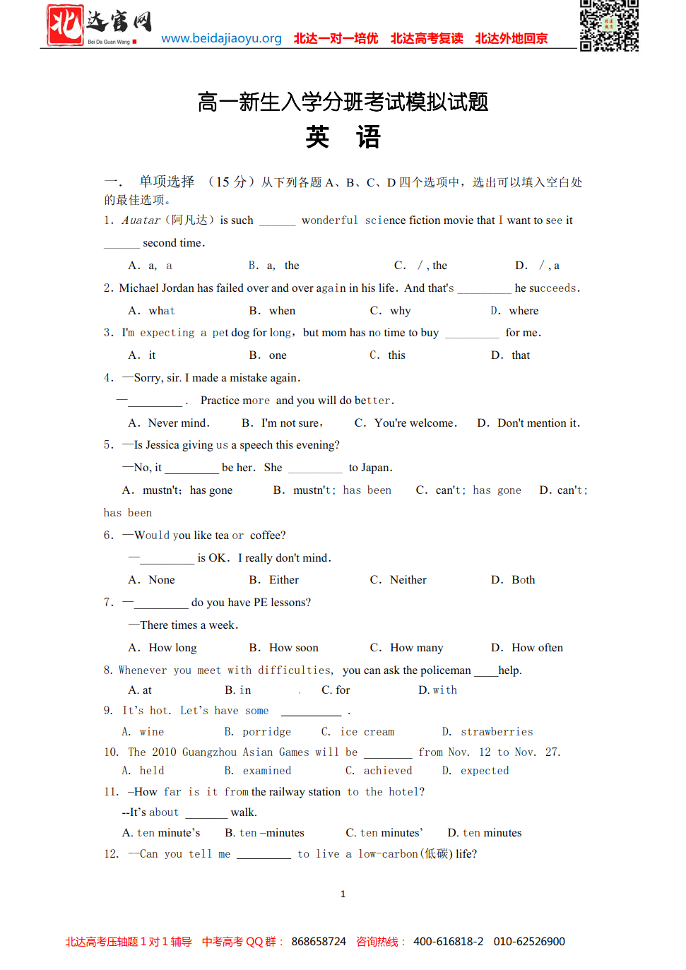 近日,北京admw360教研组为大家整理了清华附中历年新高一分班考试卷,需要的小伙伴赶紧下载吧。
