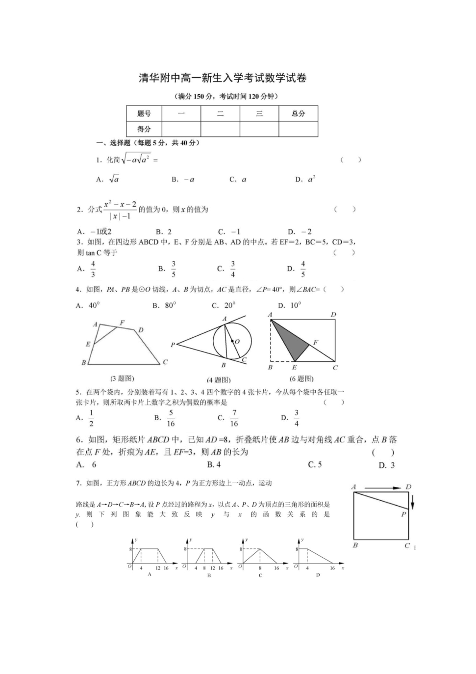 北京市清华附中2019-2020学年高一新生分班考试数学试题及答案解析版pdf