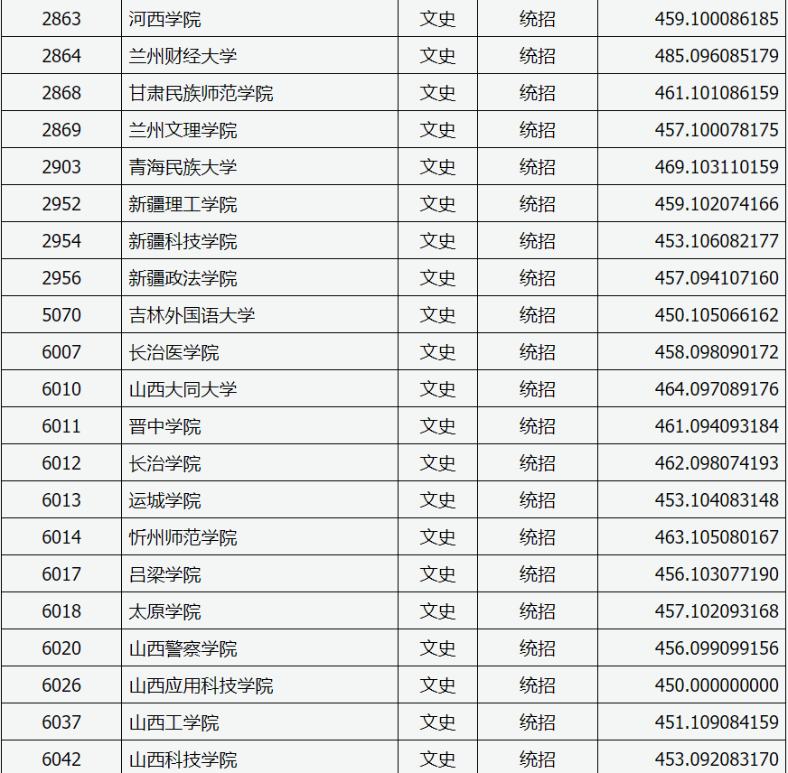 2022年山西高考招生第二批本科B类院校投档分数线(文史)