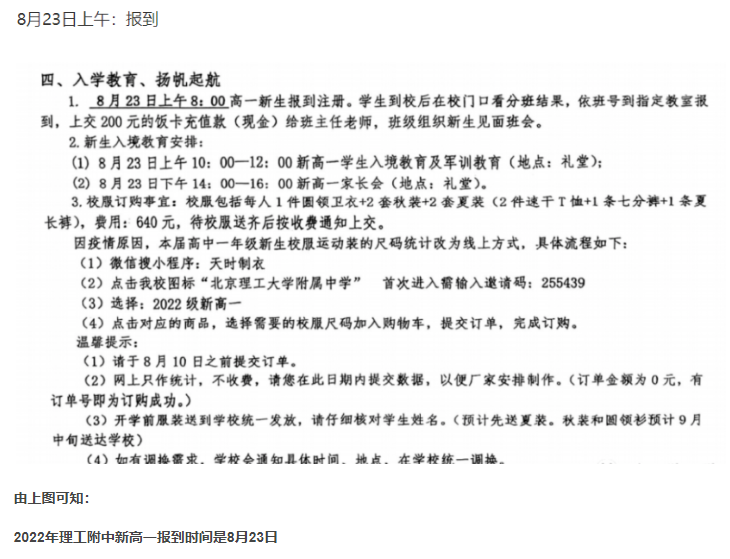 2022年北京理工附中新高一入学安排,为了方便各位同学做好开学准备,北京admw360教研组整理了内容详情,一起看下。
