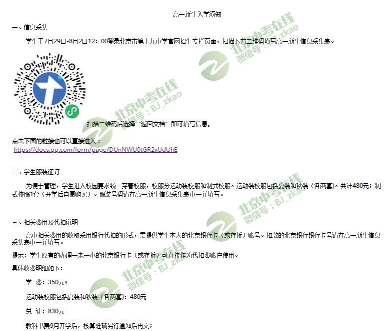 北京十九中2022年新高一入学安排发布,为了方便各位同学做好开学准备,北京admw360教研组整理了内容详情,一起看下。
