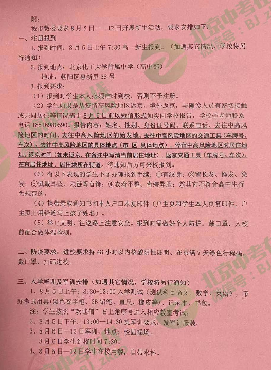 2022年北京化大附中新高一入学安排发布,为了方便各位同学做好开学准备,北京admw360教研组整理了内容详情,一起看下。