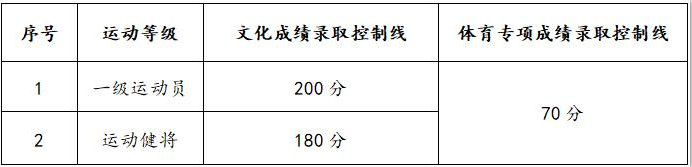 我校2022年运动训练、武术与民族传统体育专业文化成绩录取控制线和体育专项成绩录取控制线如下: