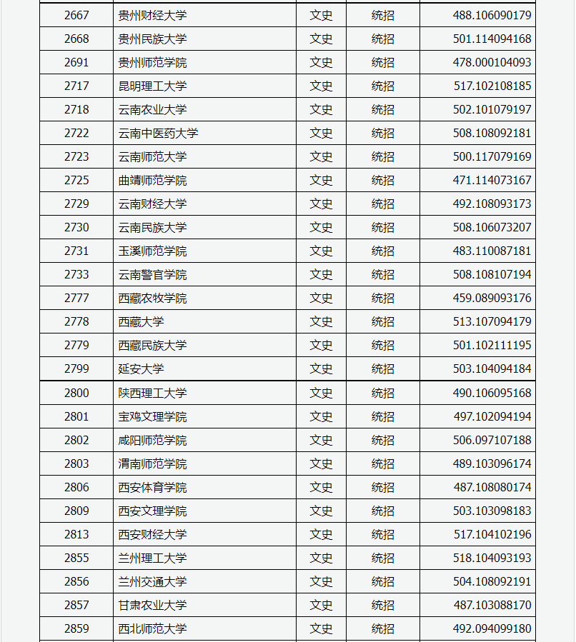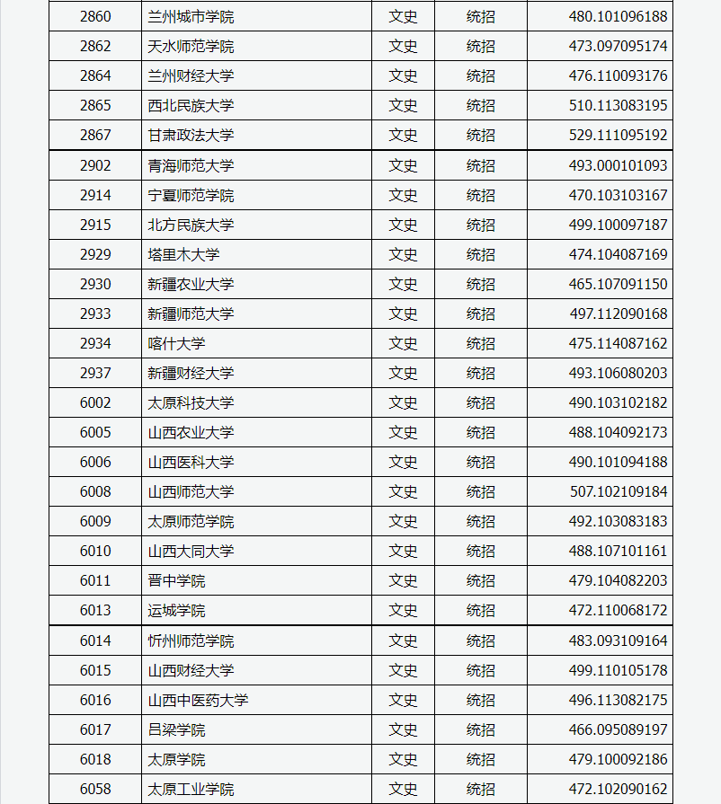 2022年山西高考招生第二批本科A类院校投档分数线(文史)