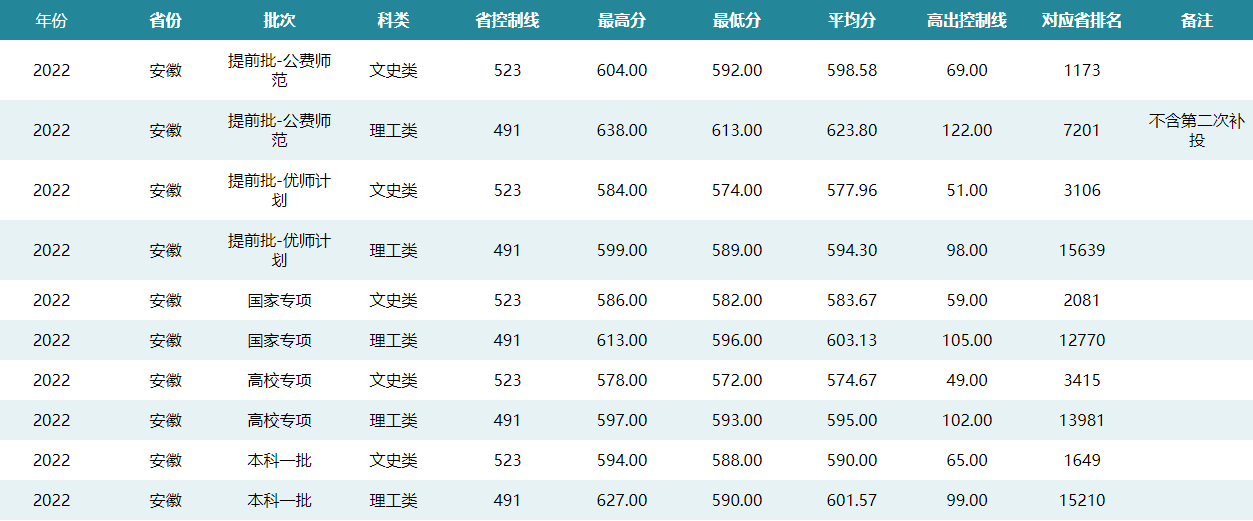 华中师范大学2022年安徽招生录取分数线