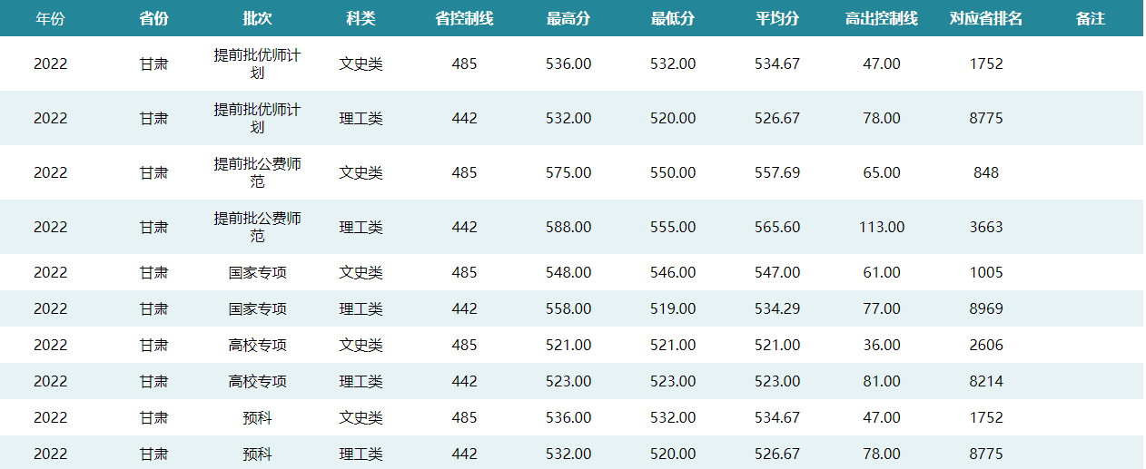 华中师范大学2022年甘肃招生录取分数线
