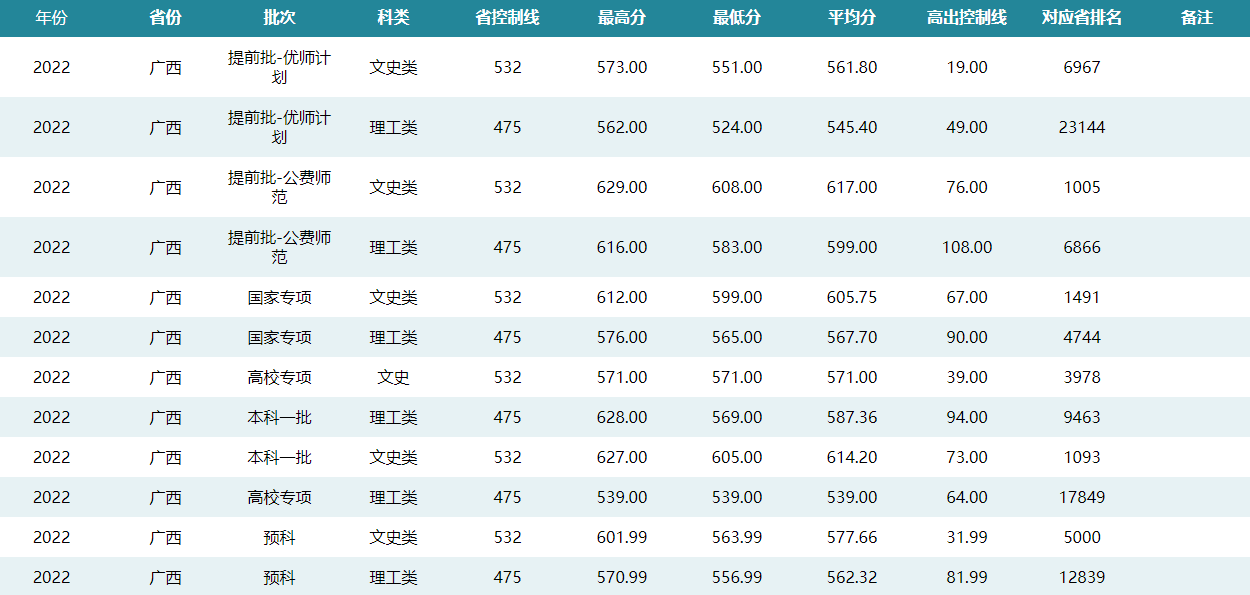 华中师范大学2022年广西招生录取分数线