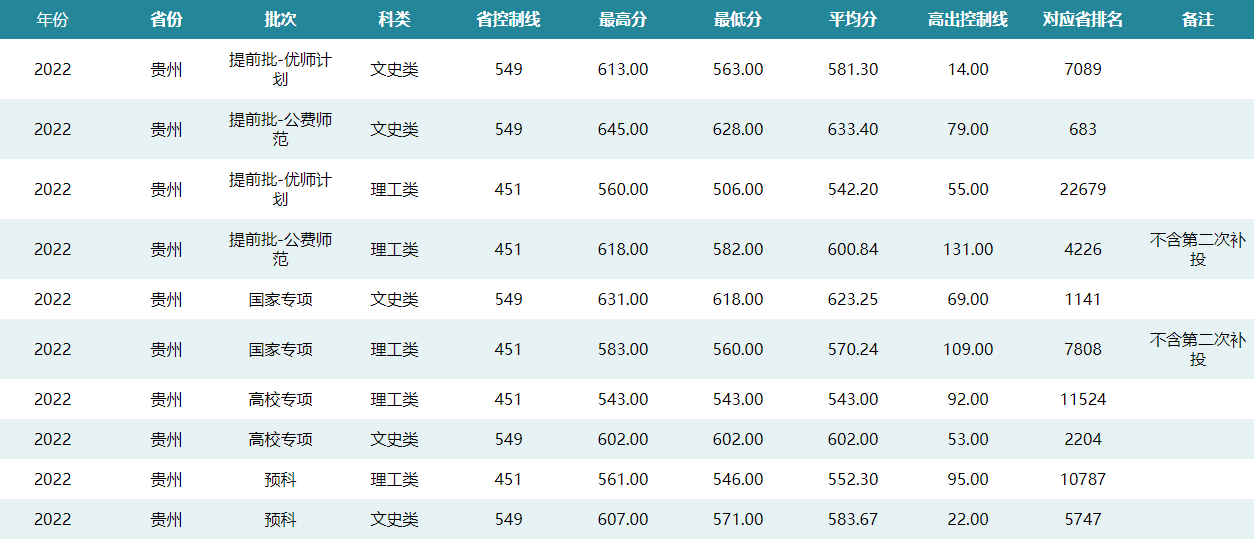 华中师范大学2022年贵州招生录取分数线