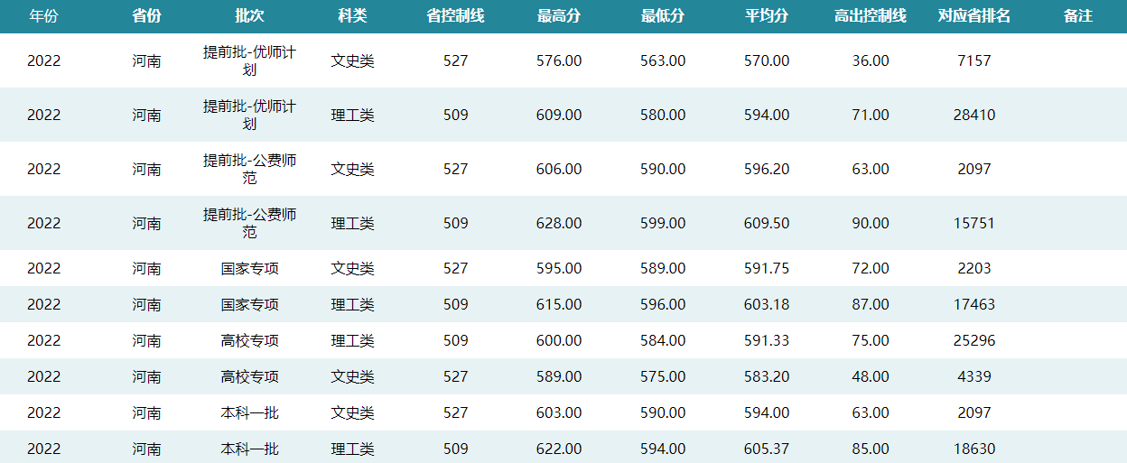 华中师范大学2022年河南招生录取分数线