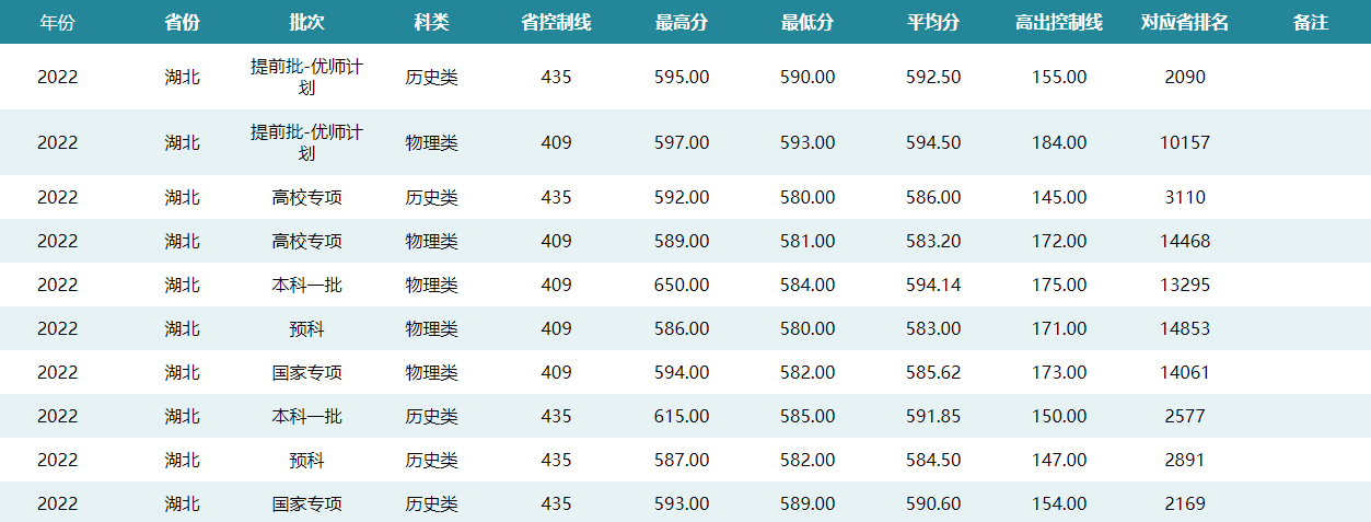华中师范大学2022年湖北招生录取分数