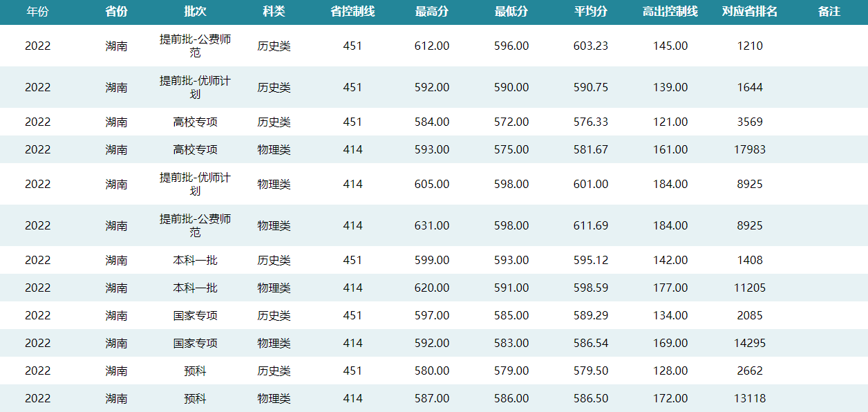 华中师范大学2022年湖南招生录取分数