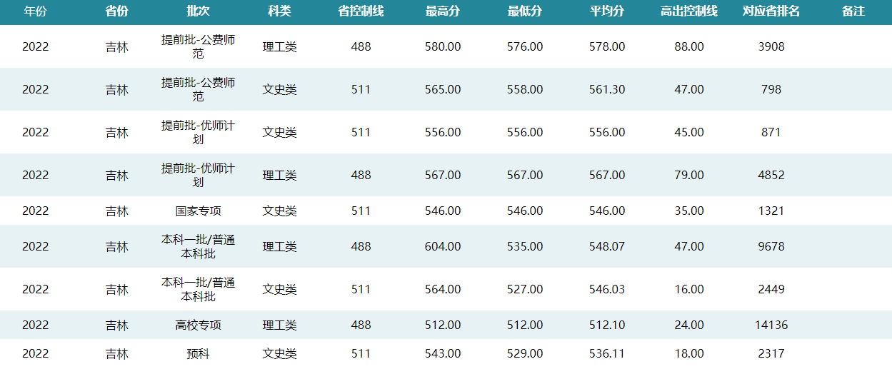 华中师范大学2022年吉林招生录取分数