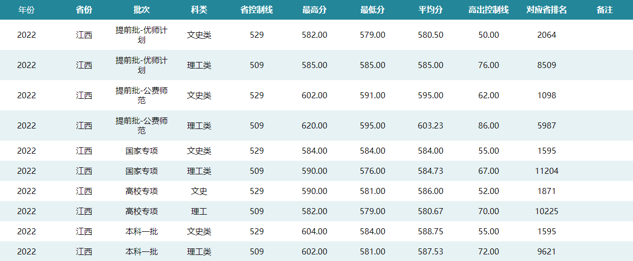 华中师范大学2022年江西招生录取分数