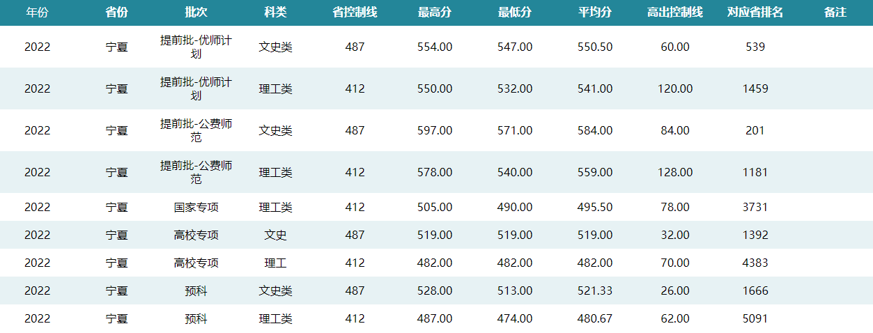 华中师范大学2022年宁夏招生录取分数