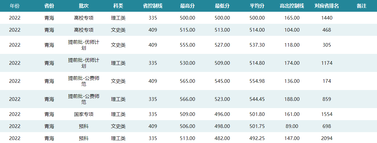 华中师范大学2022年青海招生录取分数
