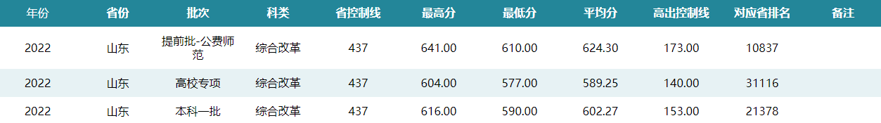 华中师范大学2022年山东招生录取分数